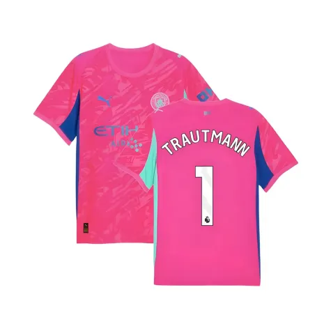 Official Bert Trautmann football shirt. This is the NEW Man City Goalkeeper Home Shirt (Pink) for the 2025-2026 season which is manufactured by Puma and is available in all Adult sizes.
