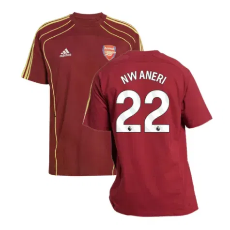 Official Ethan Nwaneri football shirt. This is the NEW Arsenal UBP Tee (Noble Maroon) for the 2025-2026 season which is manufactured by Adidas and is available in all Adult sizes.