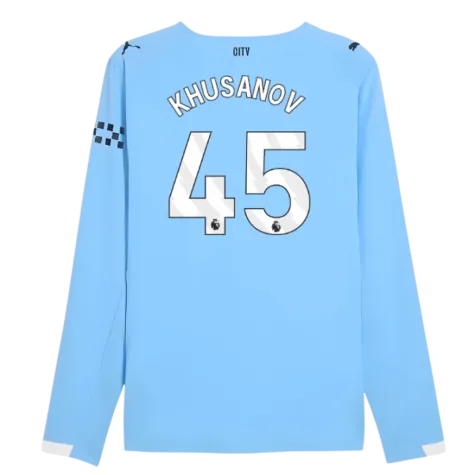 2025-2026 Man City Authentic Long Sleeve Home Shirt (Khusanov 45)