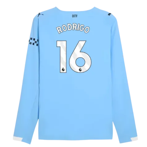 2025-2026 Man City Authentic Long Sleeve Home Shirt (Rodrigo 16)