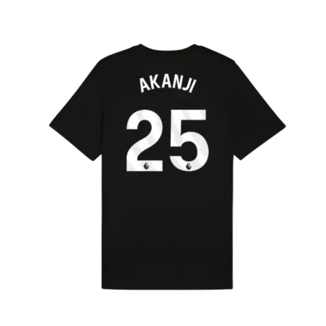 Official Manuel Akanji football shirt. This is the NEW Man City FtblESS Tee (Black) for the 2025-2026 season which is manufactured by Puma and is available in all Adult sizes.
