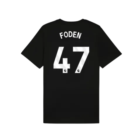 2025-2026 Man City FtblESS Tee (Black) (Foden 47)