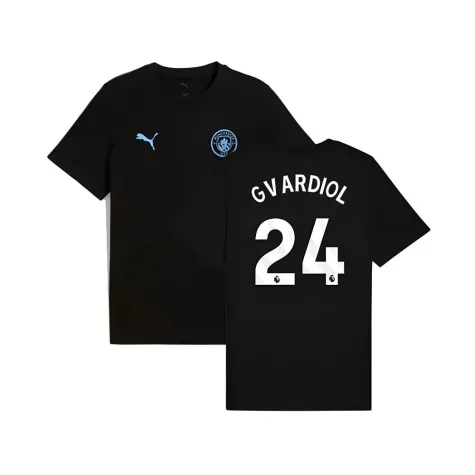 Official Josko Gvardiol football shirt. This is the NEW Man City FtblESS Tee (Black) for the 2025-2026 season which is manufactured by Puma and is available in all Adult sizes.