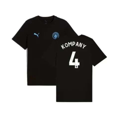 Official Vincent Kompany football shirt. This is the NEW Man City FtblESS Tee (Black) for the 2025-2026 season which is manufactured by Puma and is available in all Adult sizes.