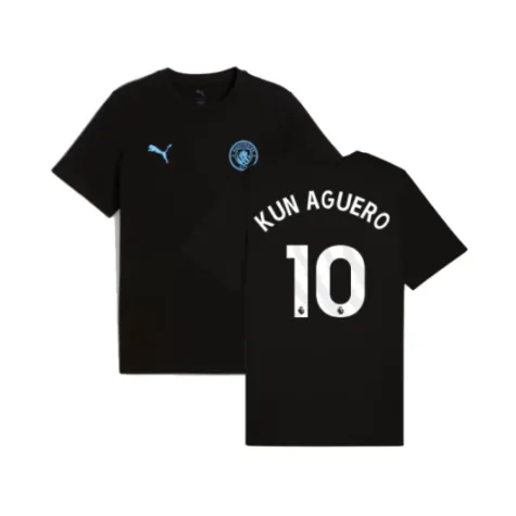 2025-2026 Man City FtblESS Tee (Black) (Kun Aguero 10)