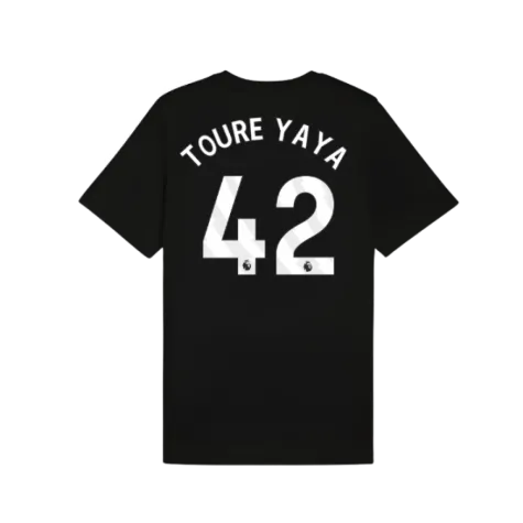 Official Yaya Toure football shirt. This is the NEW Man City FtblESS Tee (Black) for the 2025-2026 season which is manufactured by Puma and is available in all Adult sizes.