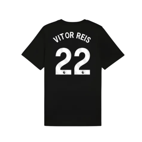 Official Vitor Reis football shirt. This is the NEW Man City FtblESS Tee (Black) for the 2025-2026 season which is manufactured by Puma and is available in all Adult sizes.