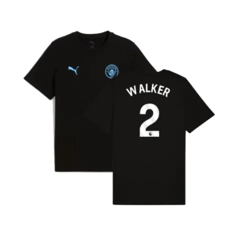 Official Kyle Walker football shirt. This is the NEW Man City FtblESS Tee (Black) for the 2025-2026 season which is manufactured by Puma and is available in all Adult sizes.