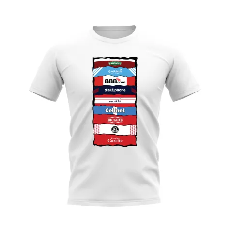 Show off your favourite team's history of shirt sponsors with this sponsor history t-shirt!