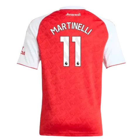 Official Gabriel Martinelli football shirt. This is the NEW Arsenal Home Shirt (Kids) for the 2025-2026 season which is manufactured by Adidas and is available in all Childrens sizes.