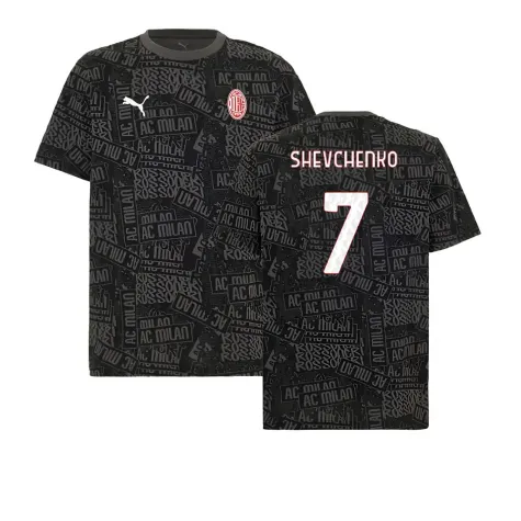 Official Andrei Shevchenko football shirt. This is the NEW AC Milan ftblCulture Tee AOP (Black) for the 2025-2026 season which is manufactured by Puma and is available in all Adult sizes.
