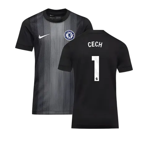 Official Petr Cech football shirt. This is the NEW Chelsea Home Goalkeeper Shirt (Black) - Kids for the 2025-2026 season which is manufactured by Nike and is available in all Childrens sizes.