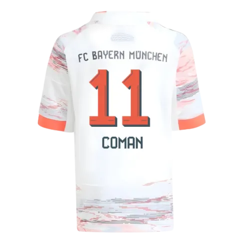 Official Kingsley Coman football shirt. This is the NEW Bayern Munich Away Mini Kit for the 2025-2026 season which is manufactured by Adidas and is available in all Childrens sizes.