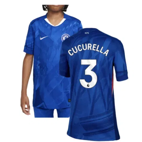 Official Marc Cucurella football shirt. This is the NEW Chelsea Home Shirt (Kids) for the 2025-2026 season which is manufactured by Nike and is available in all Childrens sizes.