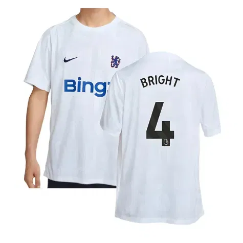 Official Millie Bright football shirt. This is the NEW Chelsea Academy Pro Pre-Match Football Top (White) for the 2025-2026 season which is manufactured by Nike and is available in all Adult sizes.