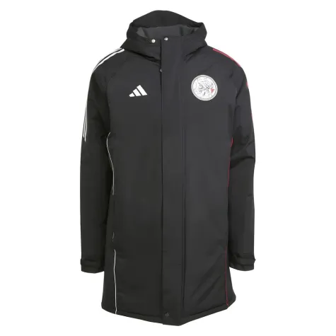 This is the adidas Ajax Parka 2025-2026 in Black, White and Red. This jacket is ideal to wear during the colder days. It is suitable for training or wear it as a winter jacket. The signature team details, such as the club logo and adidas logo, reflect the club's pride. The iconic adidas 3-Stripes complete your look. Show your support for Ajax with this Ajax parka!
