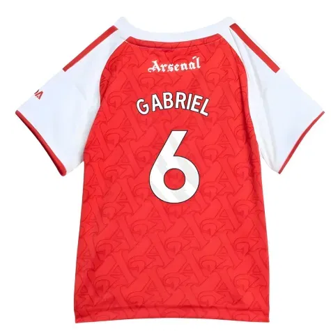 Official Gabriel Magalhaes football shirt. This is the NEW Arsenal Home Baby Kit for the 2025-2026 season which is manufactured by Adidas and is available in all Childrens sizes.
