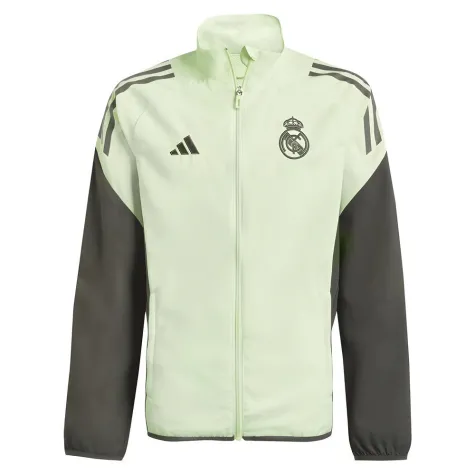 Get ready like the pros with the Real Madrid 2025-2026 Youth Pre-Match Jacket. Worn by the team before kick-off, this eye-catching full-zip jacket features a mint green body with contrasting charcoal sleeves and detailing, creating a bold and modern look. Designed with moisture-wicking AEROREADY fabric, it helps young fans stay dry and comfortable in all conditions. The Real Madrid crest and Adidas performance logo sit proudly on the chest, while the elastic cuffs and lightweight construction make it perfect for layering on matchdays or training sessions. Ideal for any young Madridista.