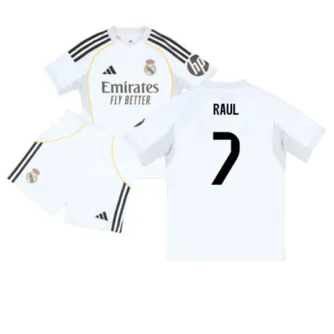 Official Raul football shirt. This is the NEW Real Madrid Home Youth Kit for the 2025-2026 season which is manufactured by Adidas and is available in all Childrens sizes.