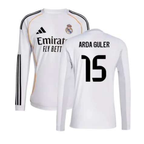Official Arda Guler football shirt. This is the NEW Real Madrid Long Sleeve Home Shirt for the 2025-2026 season which is manufactured by Adidas and is available in all Adult sizes.