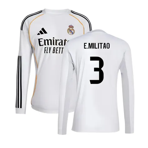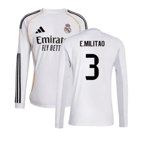 2025-2026 Real Madrid Long Sleeve Home Shirt (E.Militao 3)