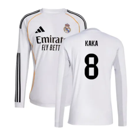 Official Kaka football shirt. This is the NEW Real Madrid Long Sleeve Home Shirt for the 2025-2026 season which is manufactured by Adidas and is available in all Adult sizes.