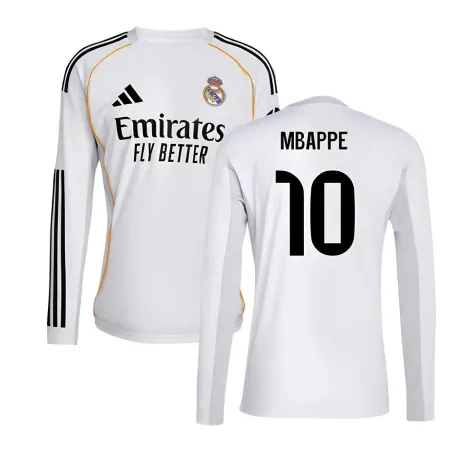 2025-2026 Real Madrid Long Sleeve Home Shirt (Mbappe 10)