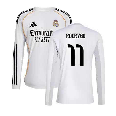 2025-2026 Real Madrid Long Sleeve Home Shirt (Rodrygo 11)