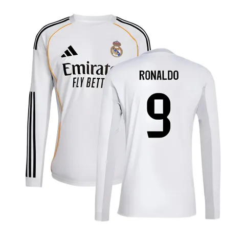 2025-2026 Real Madrid Long Sleeve Home Shirt (Ronaldo 9)