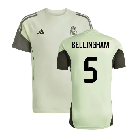 Official Jude Bellingham football shirt. This is the NEW Real Madrid Training Tee (Almost Lime) - Kids for the 2025-2026 season which is manufactured by Adidas and is available in all Childrens sizes.