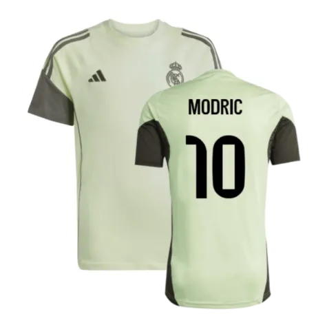 Official Luka Modric football shirt. This is the NEW Real Madrid Training Tee (Almost Lime) - Kids for the 2025-2026 season which is manufactured by Adidas and is available in all Childrens sizes.