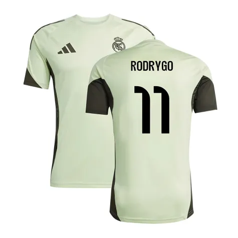 Official Rodrygo football shirt. This is the NEW Real Madrid Training Jersey (Almost Lime) for the 2025-2026 season which is manufactured by Adidas and is available in all Adult sizes.