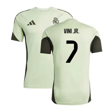 Official Vinicius Junior football shirt. This is the NEW Real Madrid Training Jersey (Almost Lime) for the 2025-2026 season which is manufactured by Adidas and is available in all Adult sizes.