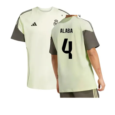 Official David Alaba football shirt. This is the NEW Real Madrid Training Tee (Almost Lime) for the 2025-2026 season which is manufactured by Adidas and is available in all Adult sizes.