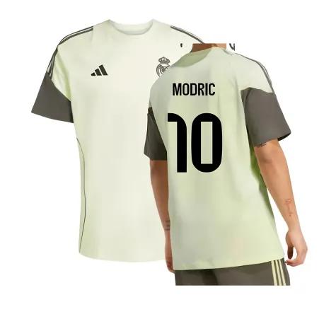 Official Luka Modric football shirt. This is the NEW Real Madrid Training Tee (Almost Lime) for the 2025-2026 season which is manufactured by Adidas and is available in all Adult sizes.