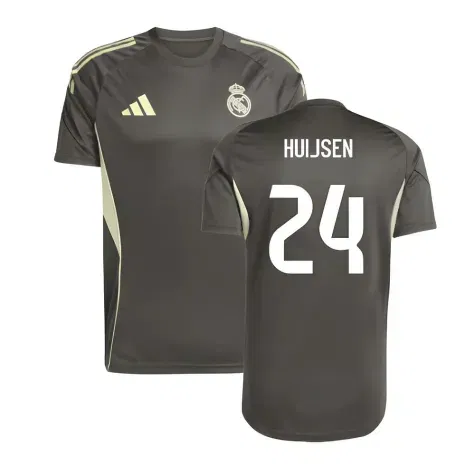 Official Dean Huijsen football shirt. This is the NEW Real Madrid Training Jersey (Utility Grey) for the 2025-2026 season which is manufactured by Adidas and is available in all Adult sizes.