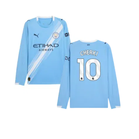 Official Ryan Cherki football shirt. This is the NEW Man City Long Sleeve Home Shirt for the 2025-2026 season which is manufactured by Puma and is available in all Adult sizes.