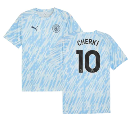 Official Ryan Cherki football shirt. This is the NEW Man City Warm Up Jersey (Silver Sky) for the 2025-2026 season which is manufactured by Puma and is available in all Adult sizes.