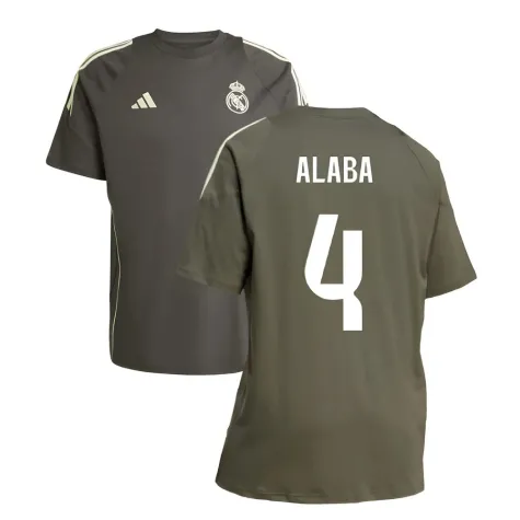 Official David Alaba football shirt. This is the NEW Real Madrid Training Tee (Utility Grey) for the 2025-2026 season which is manufactured by Adidas and is available in all Adult sizes.