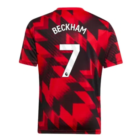 Official David Beckham football shirt. This is the NEW Man Utd Pre-Match Shirt (Red) - Kids for the 2025-2026 season which is manufactured by Adidas and is available in all Childrens sizes.