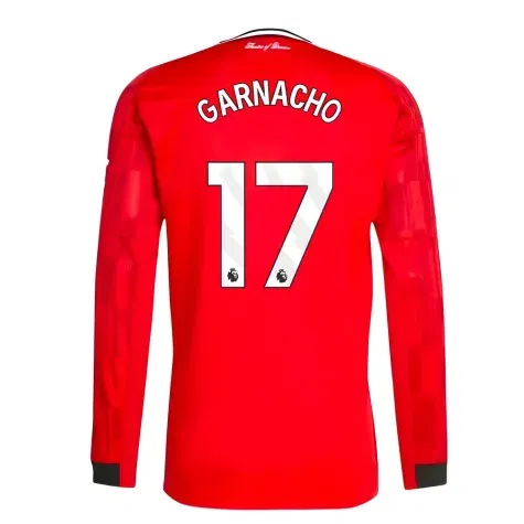 Official Alejandro Garnacho football shirt. This is the NEW Man Utd Long Sleeve Home Shirt for the 2025-2026 season which is manufactured by Adidas and is available in all Adult sizes.