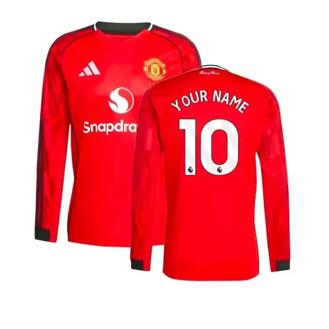 Official Your Name football shirt. This is the NEW Man Utd Long Sleeve Home Shirt for the 2025-2026 season which is manufactured by Adidas and is available in all Adult sizes.