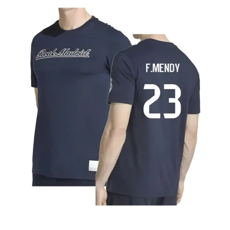 Official Ferland Mendy football shirt. This is the NEW Real Madrid US Tee (Navy) for the 2025-2026 season which is manufactured by Adidas and is available in all Adult sizes.