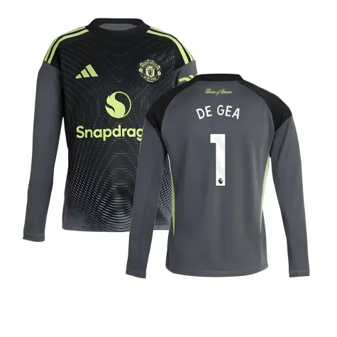 Official David De Gea football shirt. This is the NEW Man Utd Home Goalkeeper Shirt (Grey) - Kids for the 2025-2026 season which is manufactured by Adidas and is available in all Childrens sizes.