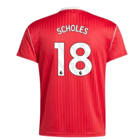 Official Paul Scholes football shirt. This is the NEW Manchester United Terrace Icons Shirt (Red) for the 2025-2026 season which is manufactured by Adidas and is available in all Adult sizes.