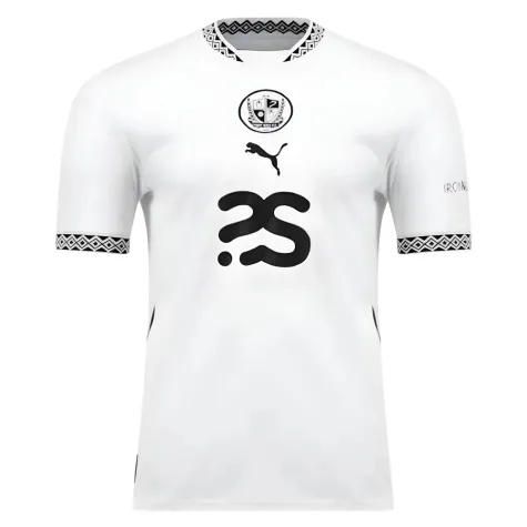 Stand out in classic style with the Port Vale 2024-2025 Home Short Sleeve Shirt by Puma. This sleek white kit is accented with bold black details, including the iconic club crest at the chest and a modern central sponsor logo. Featuring a striking geometric trim on the collar and sleeve cuffs, it combines tradition with a contemporary edge. Engineered for comfort with breathable materials and a performance fit, this shirt is perfect for both matchday and everyday wear. Show your Vale pride in the latest official home shirt.
