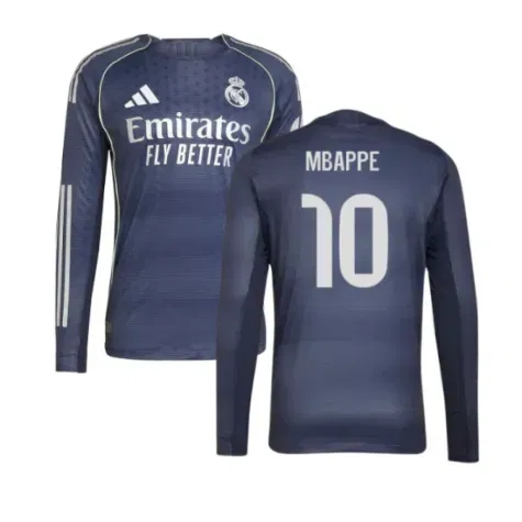 2025-2026 Real Madrid Long Sleeve Away Shirt (Mbappe 10)