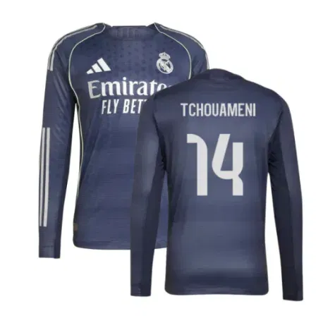 2025-2026 Real Madrid Long Sleeve Away Shirt (Tchouameni 14)