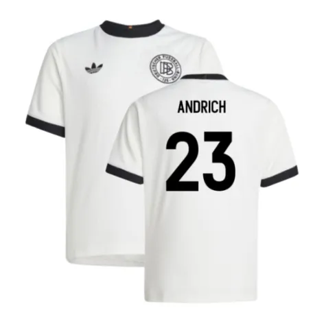 Official Robert Andrich football shirt. This is the NEW Germany 125th Anniversary Shirt - Kids which is manufactured by Adidas and is available in all Childrens sizes.