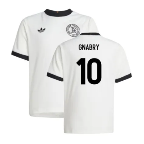 Official Serge Gnabry football shirt. This is the NEW Germany 125th Anniversary Shirt - Kids which is manufactured by Adidas and is available in all Childrens sizes.